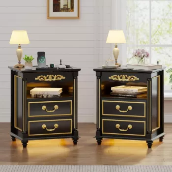 Smart Nightstand with Wireless Charging & LED Light 3 Drawers