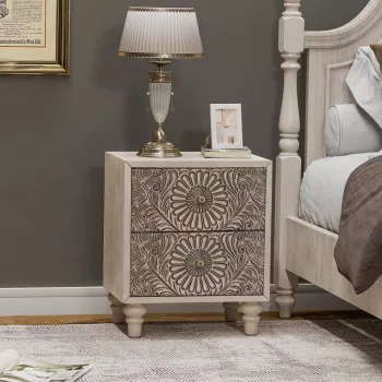 French Country 3-Drawer Nightstand with Charging Station, 30” Solid Wood