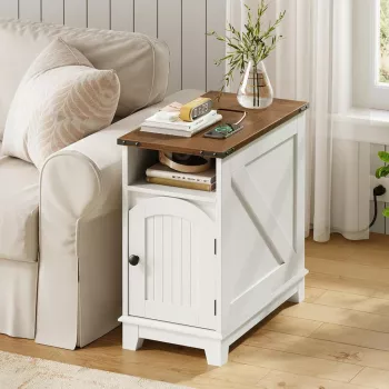 Farmhouse Tall Nightstand with LED Light & Charger Station