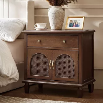 Fluted Nightstand with Drawers, Mid-Century Modern Wide Bedside Table