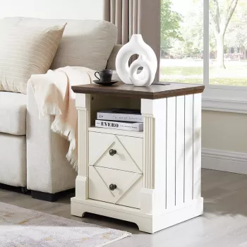 Farmhouse Nightstand with Charging Station 2-Drawer End Table
