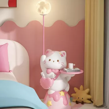 Modern Pink Cat Floor Ornament Storage Rack – Cute Kawaii Home Decor