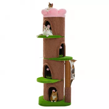 Large Cat Tree Tower with 4 Condos and Flower Top Bed for Indoor Cats