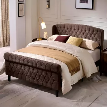 Upholstered Queen Bed Frame with Wingback Headboard – Sleigh Bed Style