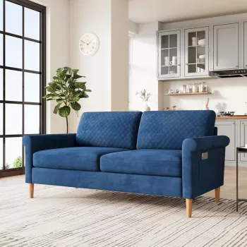 65″ Blue Mid-Century Loveseat No-Tool Assembly 2-Seater Sofa