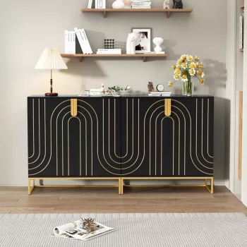 2-Piece Wood Grain Cabinet Set Gold Metal Legs Storage Sideboard