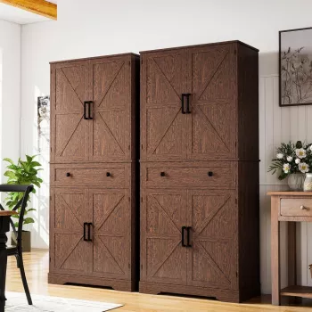 Farmhouse 2-Piece Kitchen Pantry Cabinet with Barn Doors & Adjustable Shelves