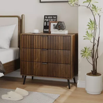 Mid-Century Modern Fluted 4-Drawer Dresser – Walnut Wood Chest for Bedroom & Living Room