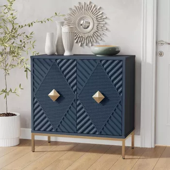 Vintage Sage 5-Drawer Accent Chest with Carved Wood Door – Modern Farmhouse Storage Cabinet