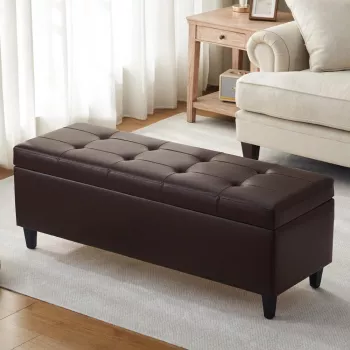 50.5″ Faux Leather Storage Ottoman Bench Supports 300 lbs